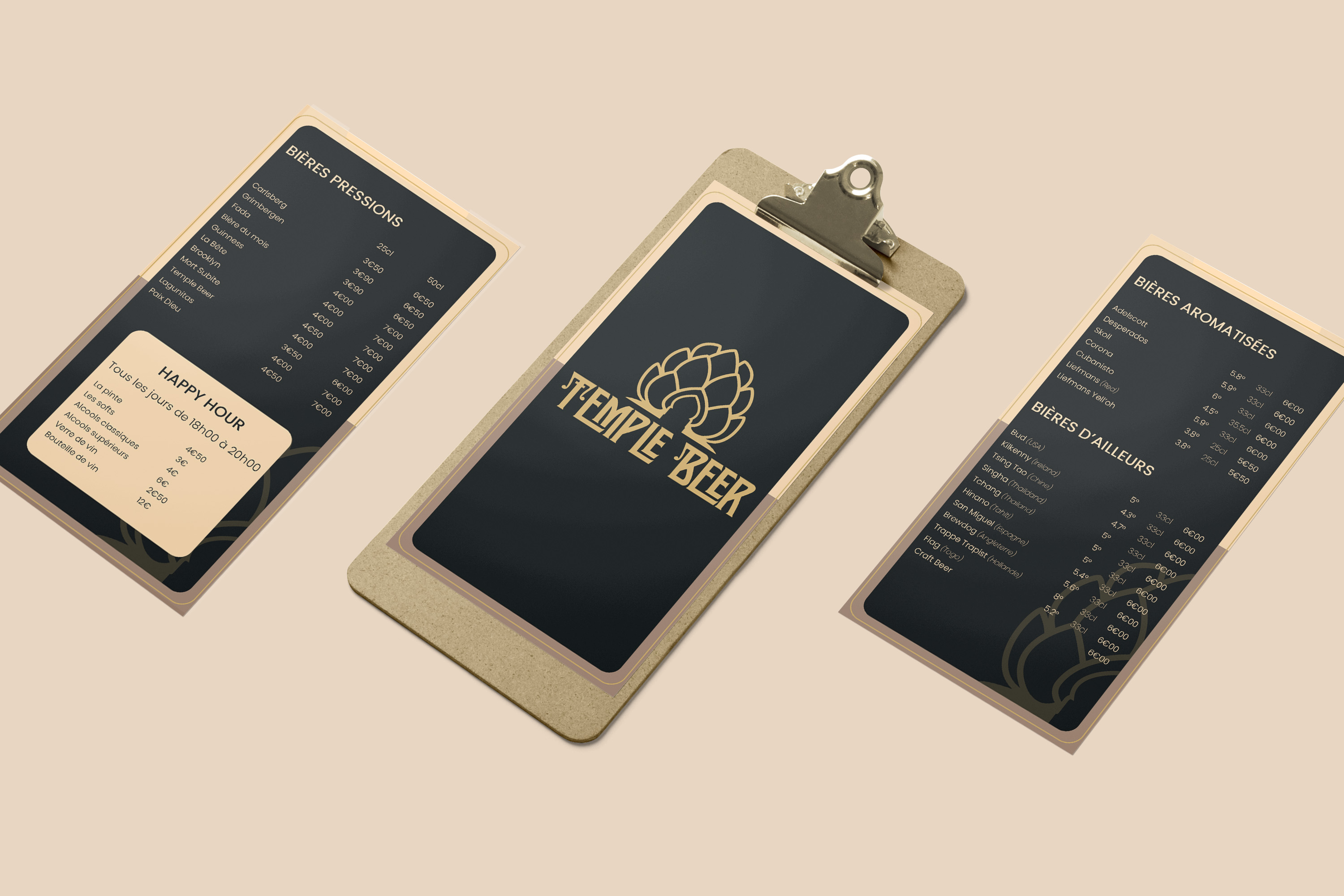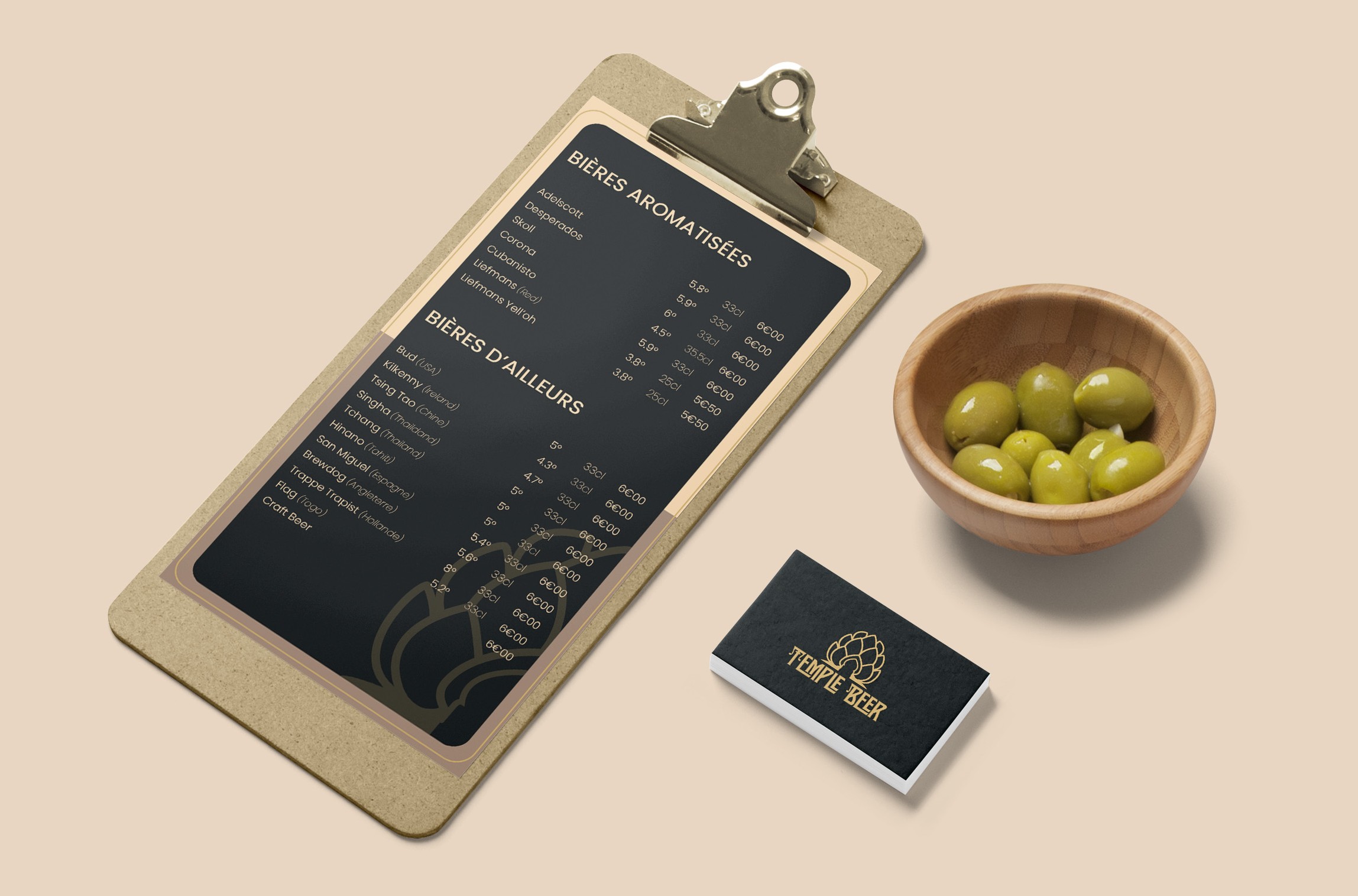 Création de la carte des boissons d'un bar à bières.